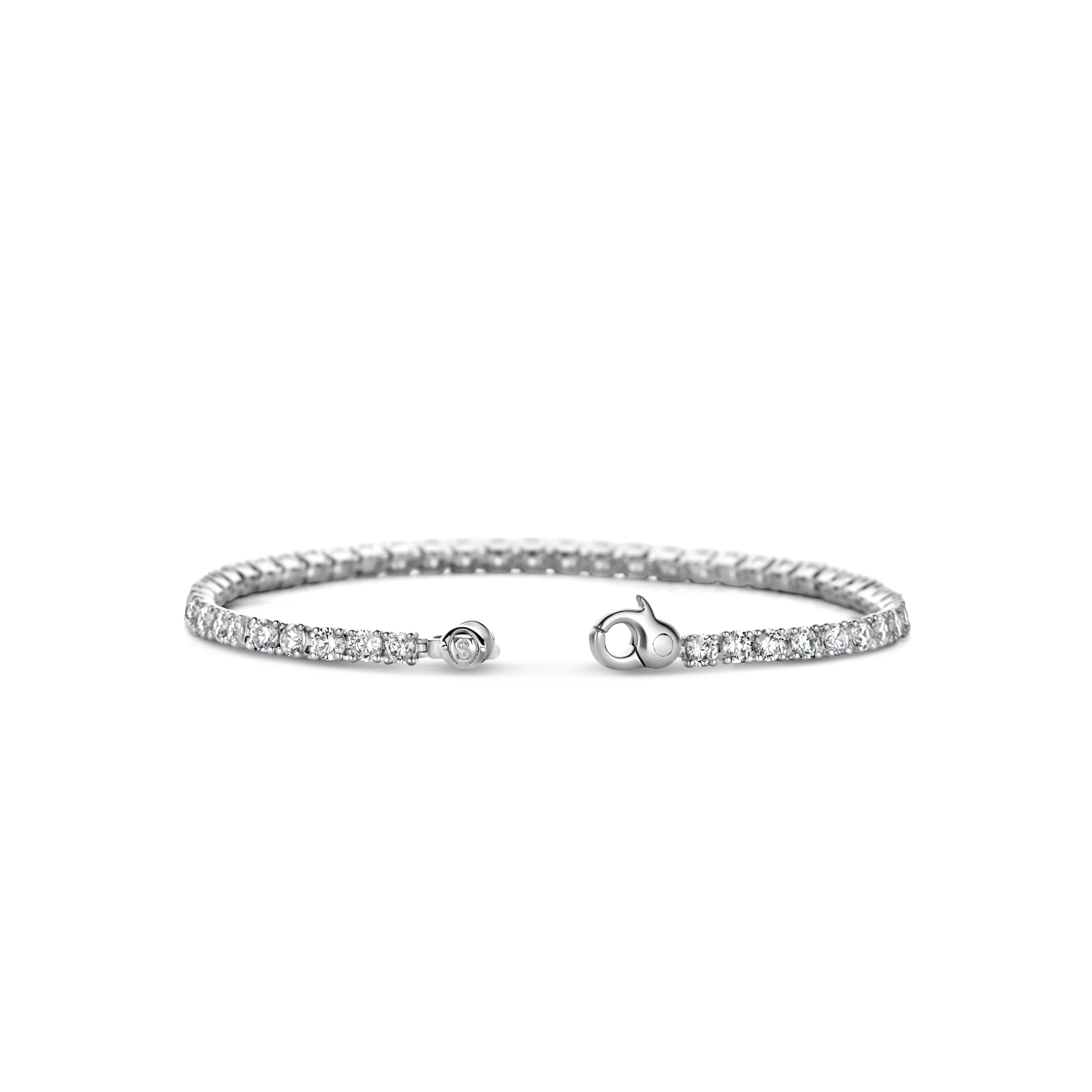This TI SENTO silver tennis bracelet 2995ZI features a stream of white cubic zirconia stones. This tennis bracelet is crafted from 925 sterling silver. Its extra-safe lock is designed to keep this piece with you all the time. This opulent piece will steal the spotlight both day and night.