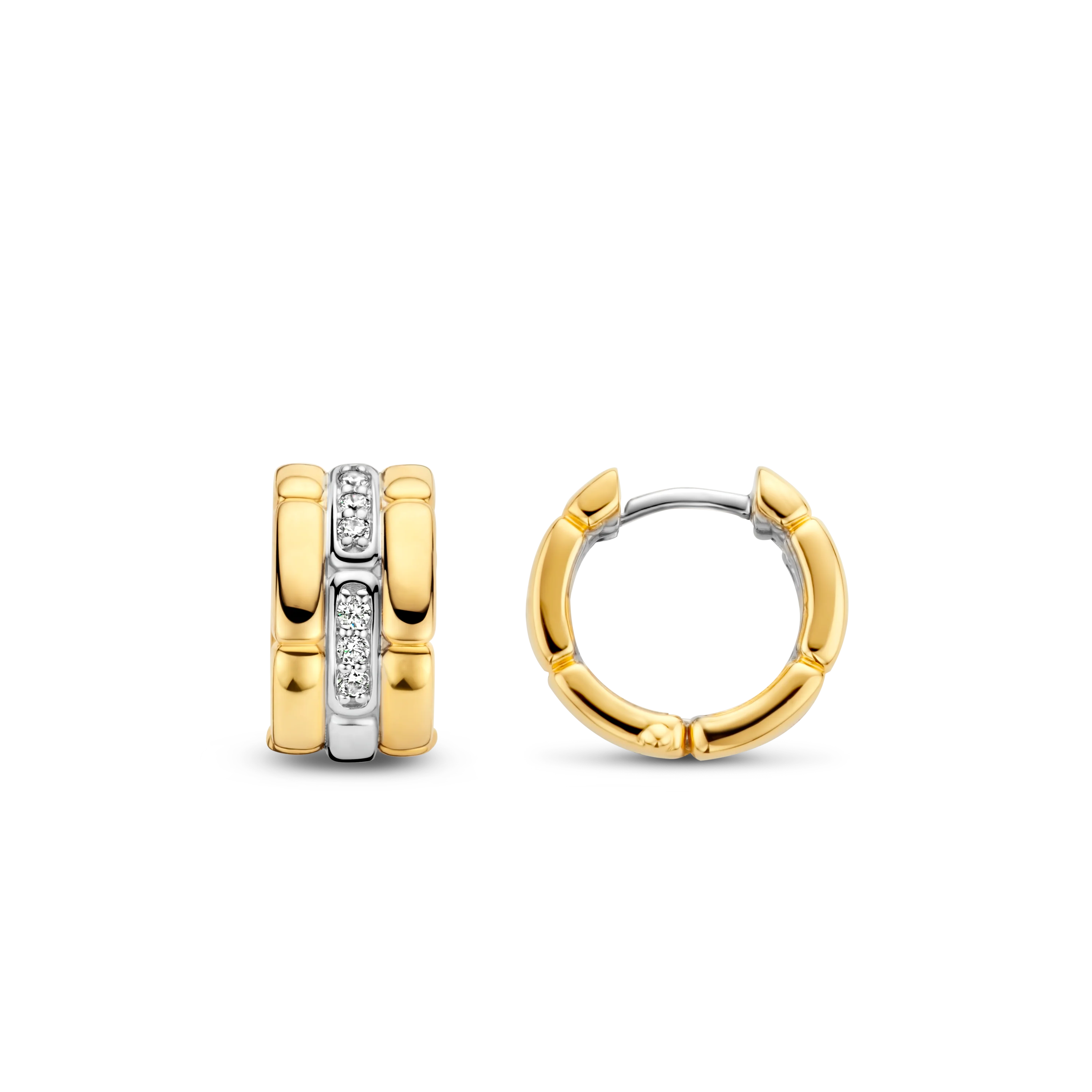 These TI SENTO gold-plated silver earrings 7890ZY feature a pavé of white cubic zirconia stones. The earrings are crafted from 925 sterling silver and plated with gold. These luxurious eye-catchers will elevate your look both day and night.