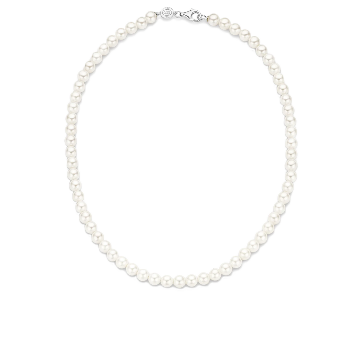 This classic TI SENTO pearl necklace makes the perfect addition to the collection. Wear it on its own for a stunning effect, or combine with other pearl pieces and pendants for an elegant complement. Chains with clip-eye fastening can be attached between the beads of this necklace, allowing to customise this piece to the liking. This necklace is available in lengths of 42cm and 90cm.