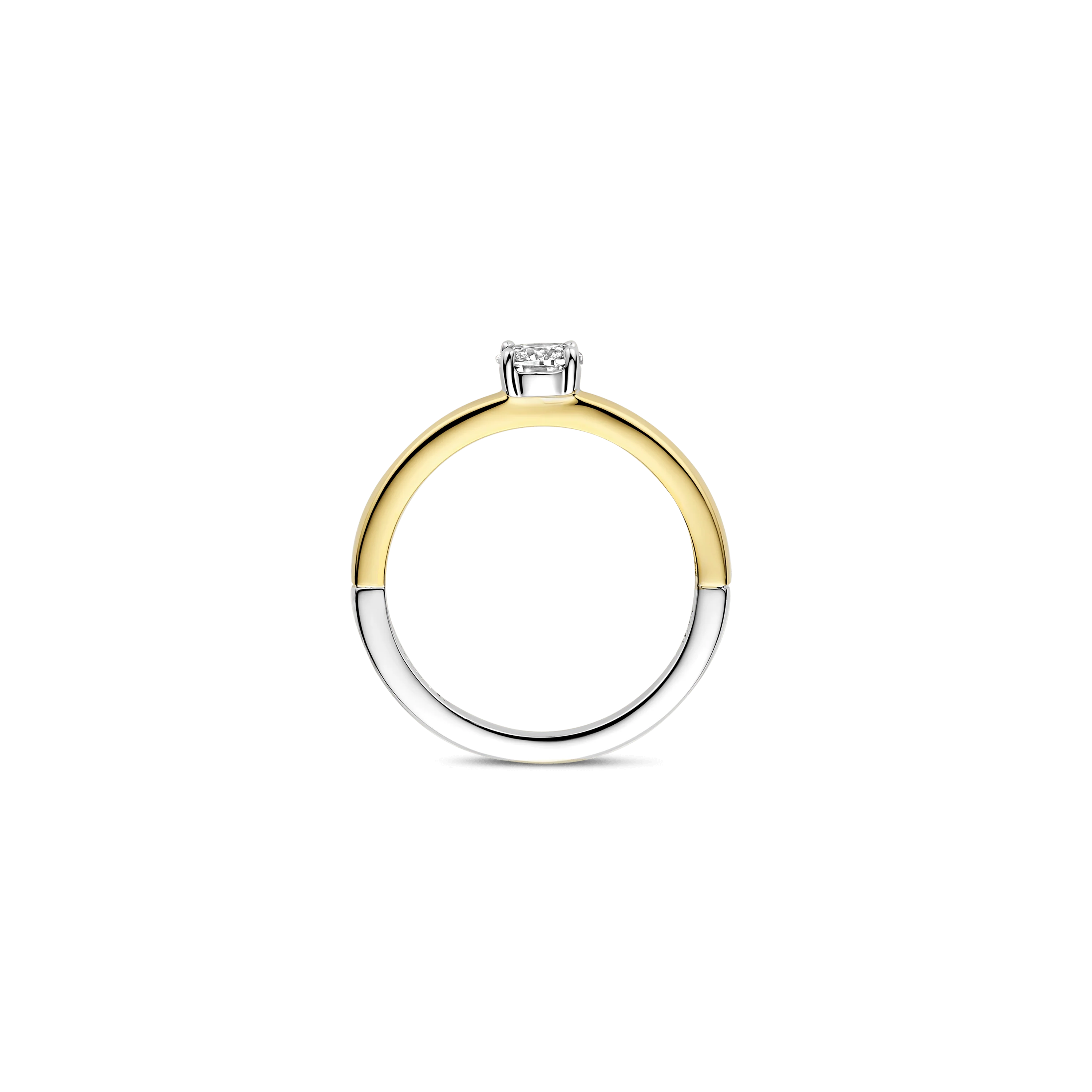 This Classic ring with centre stone is crafted from high-quality 925 sterling silver and finished with an 18ct gold vermeil coating. The slender band is set with a subtly sparkling zirconia stone, creating an elegant and timeless appearance. Thanks to its minimalist design, this ring is perfect as a stacking ring and easy to combine with other styles.
